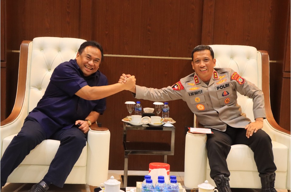 timurpost.id - Kepala Kepolisian Daerah Gorontalo, Irjen Pol. R. Eko Wahyu Prasteyo, menerima kunjungan silaturahmi dari anggota Dewan Perwakilan Rakyat Republik Indonesia (DPR RI), Dr. (H.C) Rachmad Gobel, di Lobi Presisi II Polda Gorontalo, Rabu (3/4).